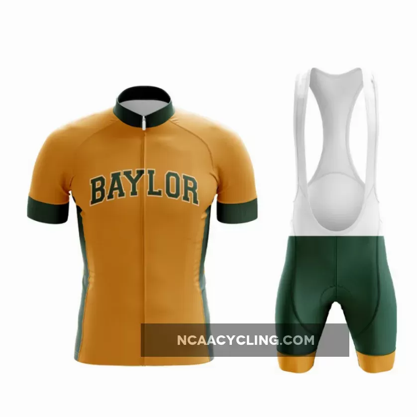 Take on the roads with the Baylor Cycling Kit, a perfect combination of performance and Baylor University pride. This comprehensive kit includes a sleek, form-fitting jersey and comfortable bib shorts, both adorned with Baylor’s distinctive green and gold. Tailored for both avid cyclists and Baylor Bears fans, this kit is designed to provide optimal comfort and style on every ride.