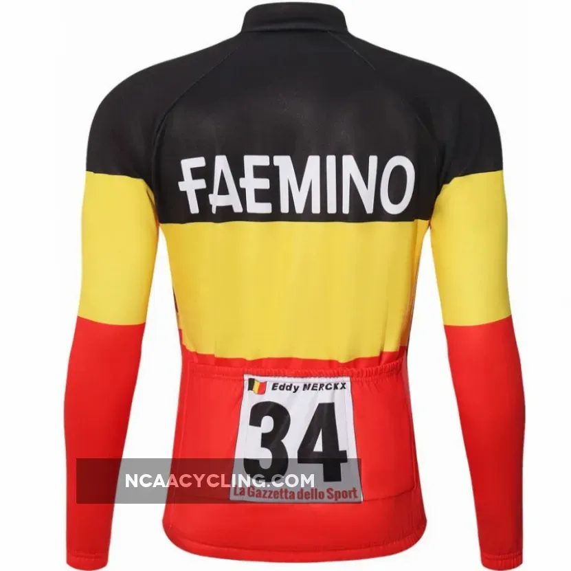 The long sleeve jersey is packable enough to keep in your back pocket on cold days, and ergonomically shaped to ensure maximum pedaling efficiency. Faemino–Faema was a professional cycling team that existed from 1968 to 1970 with the legendary Eddy Merckx who won his first tour de France with the team in 1969 and the belgium national jersey in 1970.