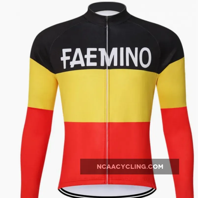 This vintage Belgium national FAEMINO cycling long sleeve set is a reliable performer for the serious cyclist that does not stop riding just because it's cold outside. The premium bib shorts for Autumn / Winter is designed to provide you total comfort allowing you to ride for hours.