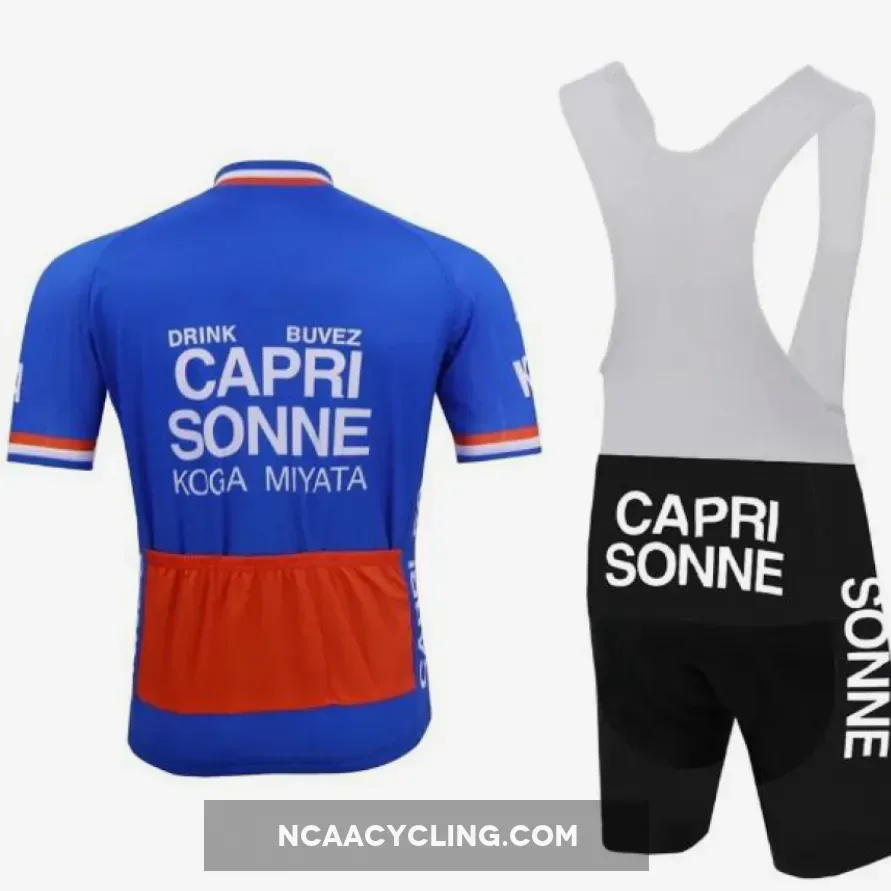 Capri Sonne was a belgium professionnal cycling team in 1981 and 1982 highly recognizable inside the peloton with its blue colors. Peter Winnen won the white jersey at the tour de France 1981 as the youngest best rider of the tour.