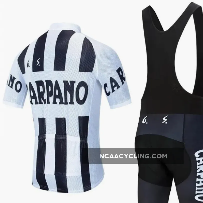 Here is the vintage cycling set of the famous Italian team Carpano during the 1960 season. This black and white striped outfit is largely inspired by the kit of the famous Juventus Turin football team.
