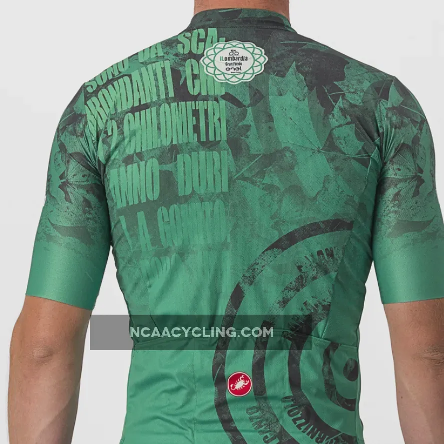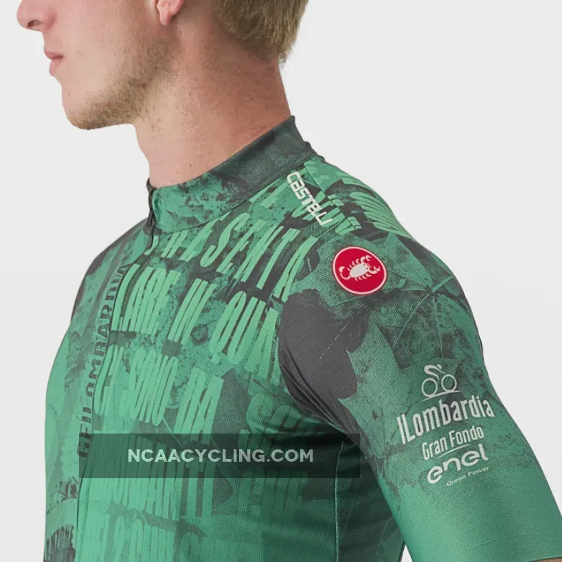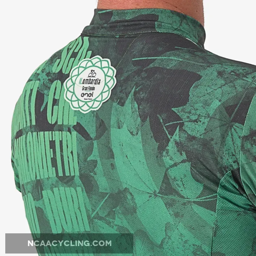 Castelli Gran Fondo Il Lombardia 2022 Jersey, designed and produced by Castelli, resumes the gray colors of the road and green of nature and brings back the graphics of the classic of death leaves.