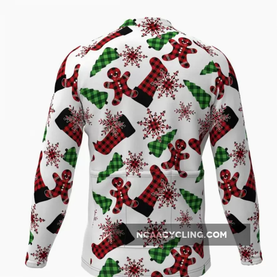 Check Shirt Themed Christmas Gingerbread Man LS Cycling Jersey