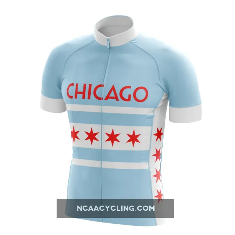 Show your Windy City pride with the Chicago Flag Cycling Jersey, now available in both light and dark blue. Featuring the iconic Chicago flag design, this jersey combines style and performance, making it perfect for any cycling enthusiast.. Find more Illinois cycling clothes here.