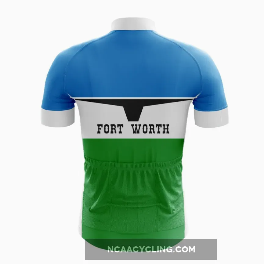 Celebrate the unique charm of Fort Worth with this cycling jersey. Drawing inspiration from the city’s flag, this jersey embodies the spirit of Fort Worth for cyclists who love the city.