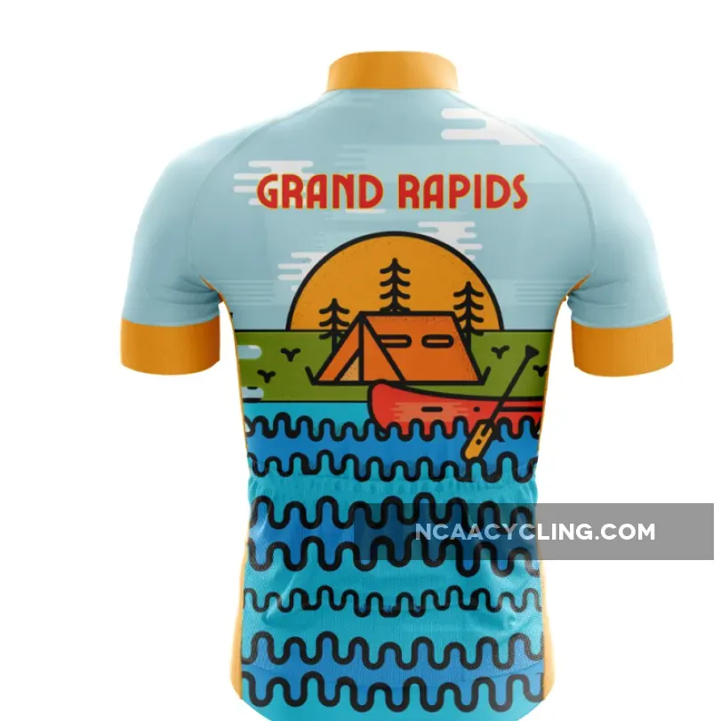 Pedal in harmony with nature in our Grand Rapids Cycling Jersey. Featuring a beautifully artistic nature and river rapids design, it’s perfect for cyclists who admire the city’s natural beauty.