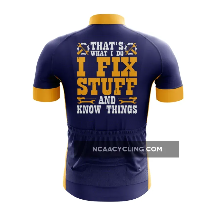Celebrate your skills with the I Fix Stuff (and Know Things) Bicycle Jersey. Ideal for handy cycling enthusiasts, this jersey highlights your expertise in fixing and knowing things. Ride with confidence and showcase your talents.