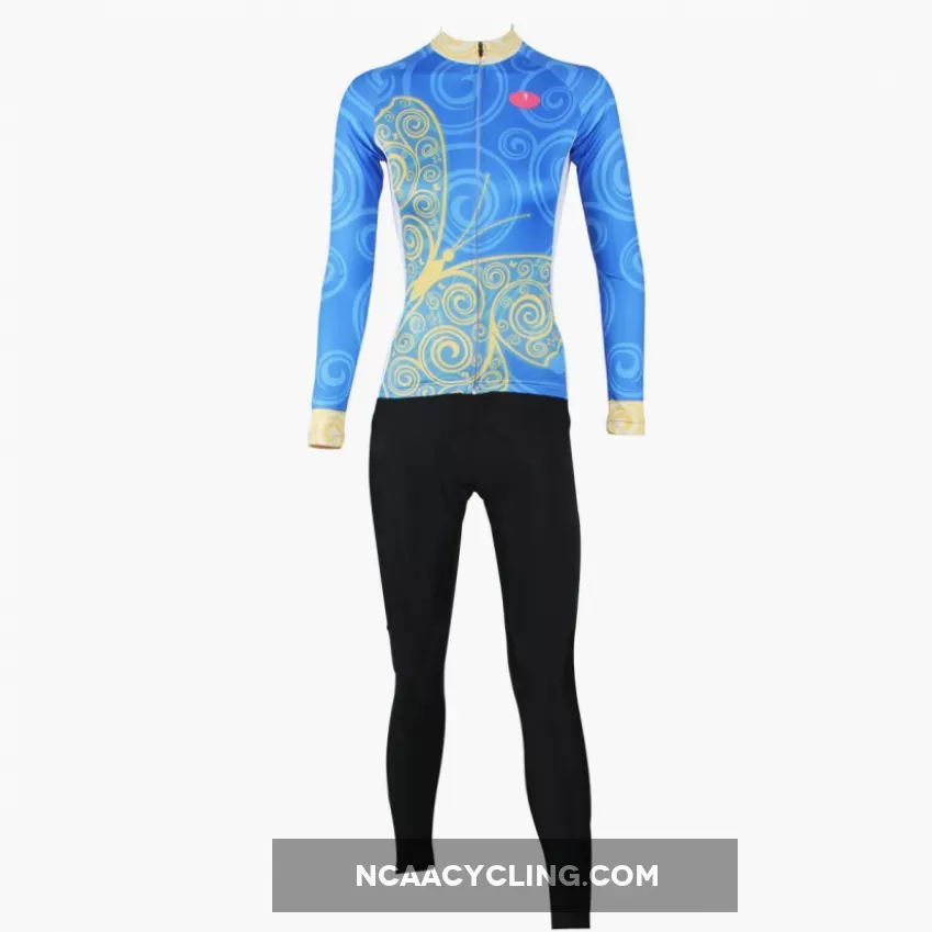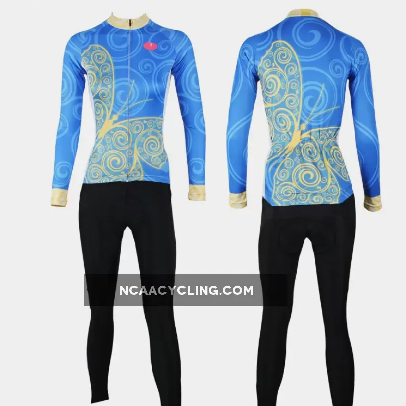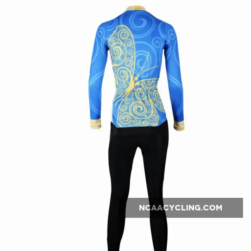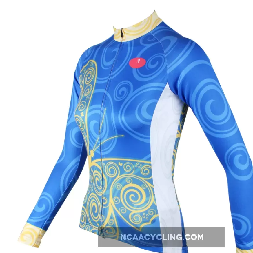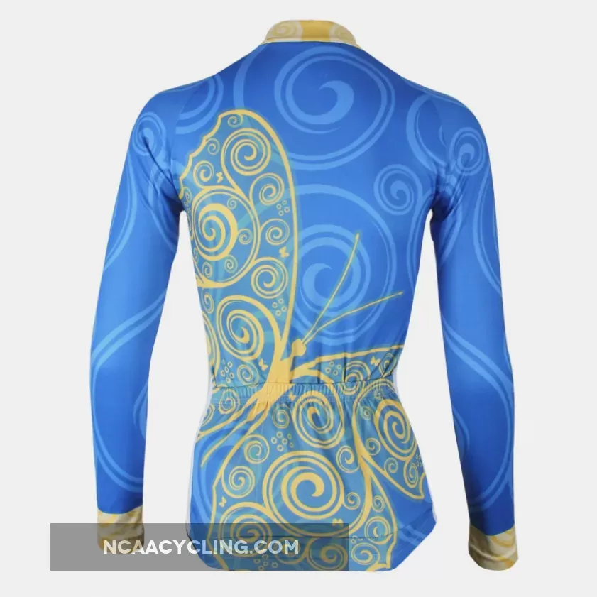ILPALADINO Women's Long Sleeves Blue Yellow-butterfly Cycling Jersey Apparel Outdoor Sports Gear Leisure Biking T-shirt NO.323