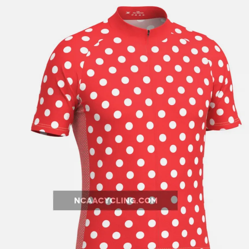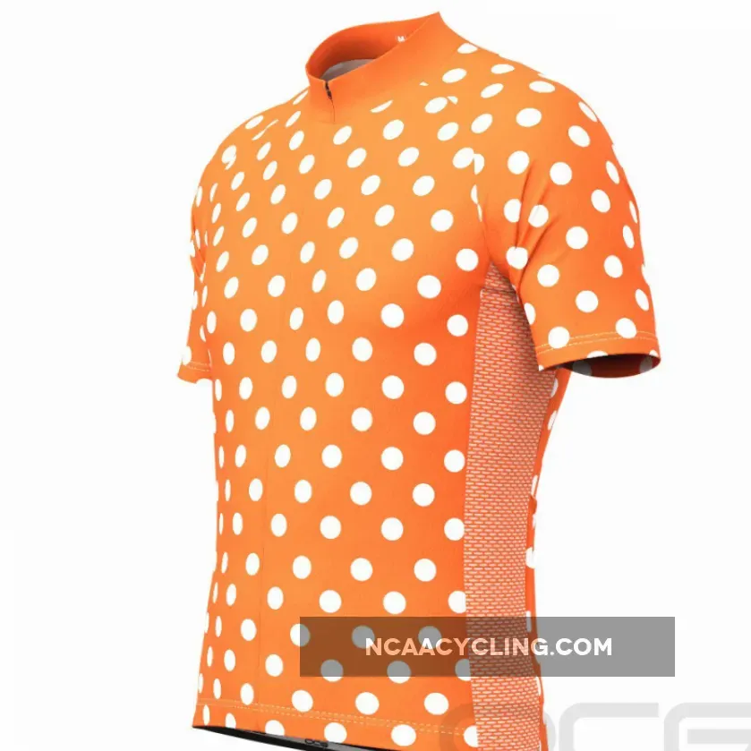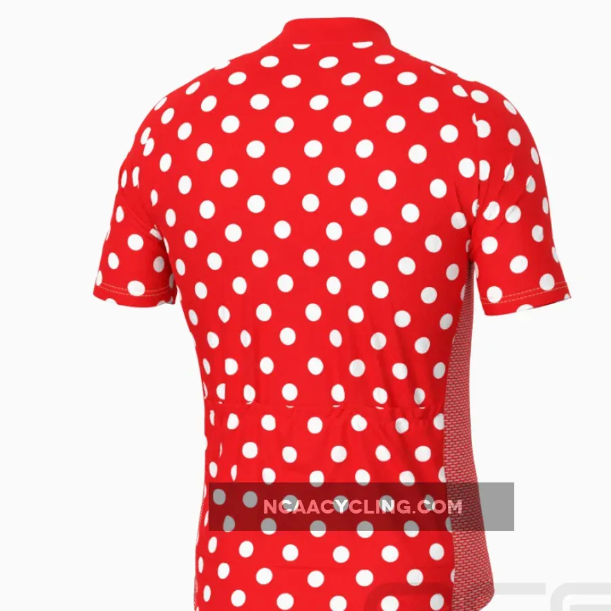 This Men’s High Visibility Polka Dot Short Sleeve Cycling Jersey is made from high-quality Cool-Max breathable fabric with a hidden full-length zip and three reinforced back pockets.