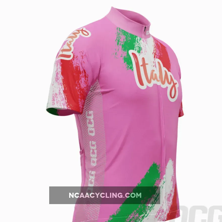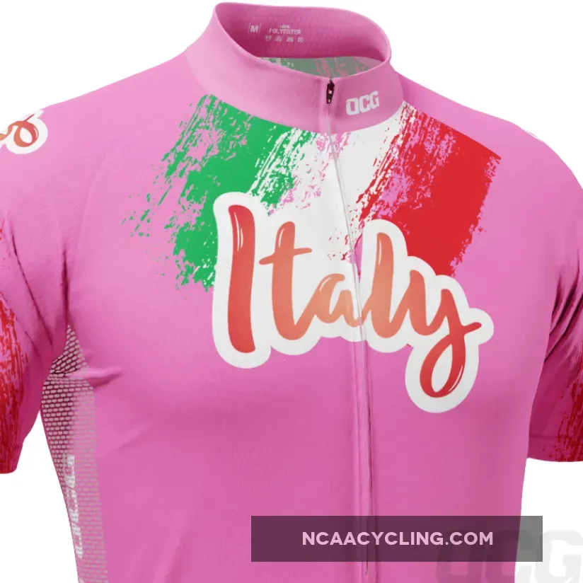 Inspired by the jersey that marked the 100th year of the Giro d’Italia in 2017, this Italy 100 Years Pink Cycling Jersey brings a high visibility pink design with Italian flag colors.