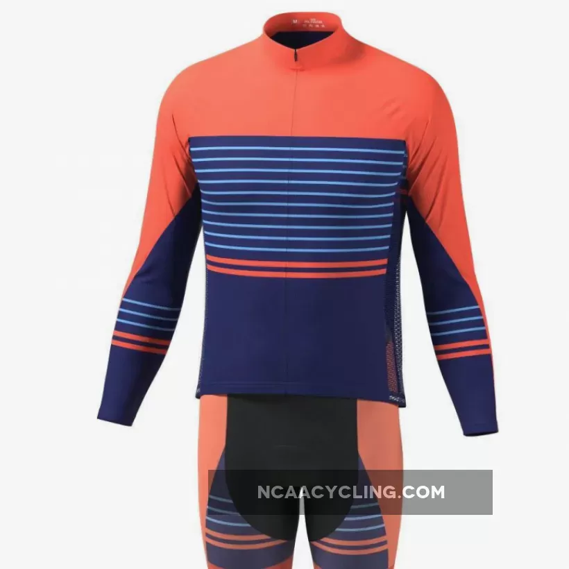 Men’s Orange Blue Stripe Long Sleeve Cycling Kit Details