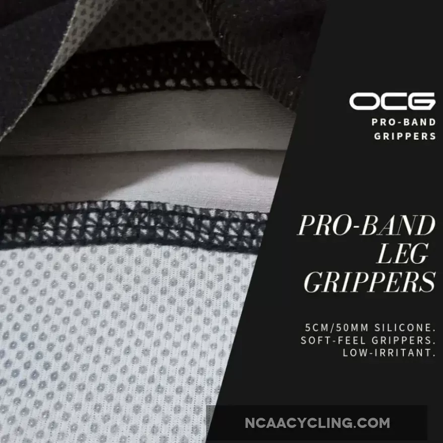 - Grippers: 45mm silicon Pro-Band leg grippers. Low irritant silicone waist gripper.