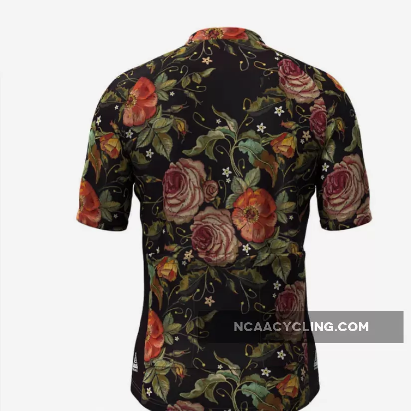 Men's Retro Rose Flower Embroidery Stitches Cycling Jersey V1