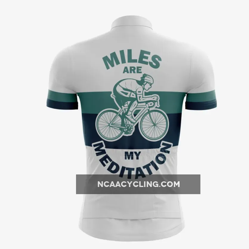 “I’ve got to say, this ‘Miles Meditation Cycling Jersey’ (MMCJ) is top-notch. The fabric is super breathable and moisture-wicking, comfy during long rides. The white-green-navy color combo is sleek. I’m stoked with the quality, durability, and affordability of this jersey. It’s a total game-changer for my rides. 5/5 stars, IMHO.” – Rachel H., Biking Enthusiast