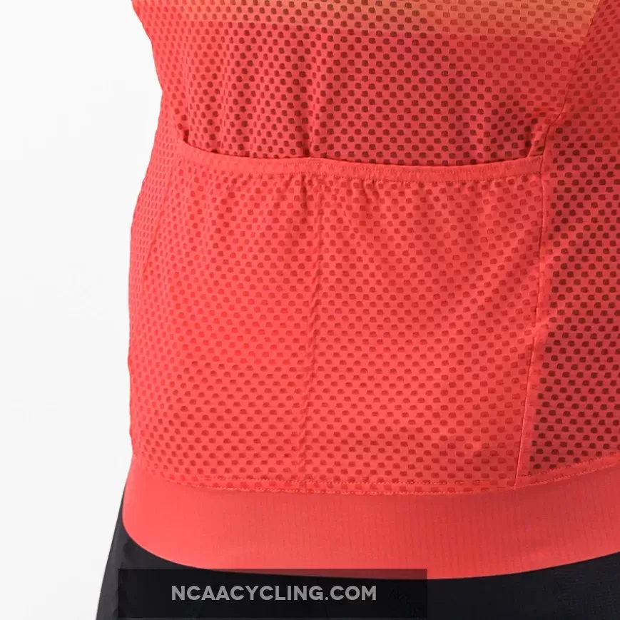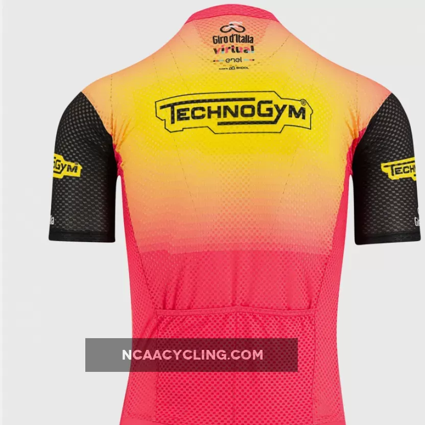 The Castelli #Girovirtual 2022 shirt was made for the rigors of indoor training. The 3D Mesh fabric allows maximum air breathability to keep you cool, while the 100% polyester content ensures maximum sweat absorption and dispersion. It's not too see-through in case you want to wear it for a group workout. Or, if you're using it at home and want to take it off after a bit of heating, you can easily do so thanks to the long zip. A couple of pockets have been added to the back to allow you to put in your AirPods or phone or headband or whatever you use during your workout. The low collar and short waist have been kept for maximum breathability. And if it happens to you, it can also turn into an excellent jersey for cycling outings on the hottest days of August.