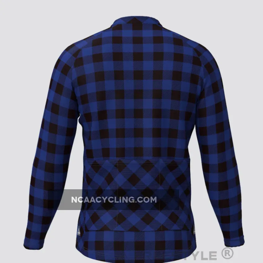 Plaid Checkered Shirt V2 Men's LS Cycling Jersey Blue