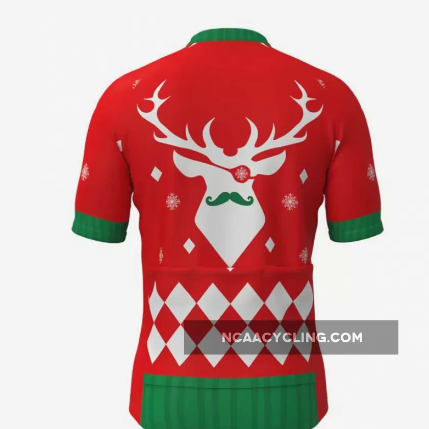 Ugly Christmas Sweater Elk Cycling Jersey Red