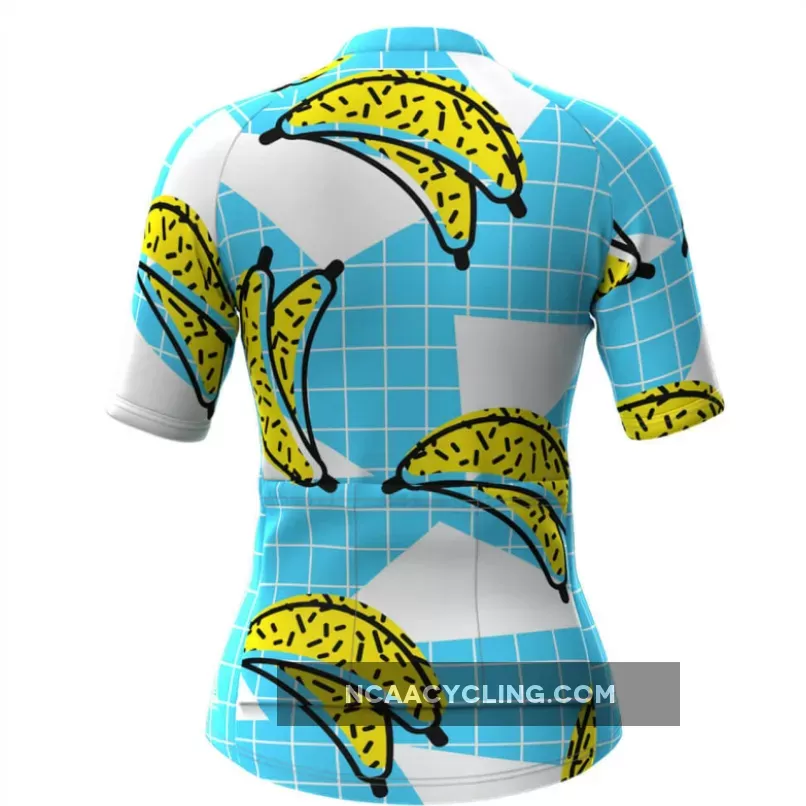 Women's Banana Print Blue Plaid Cycling Jersey