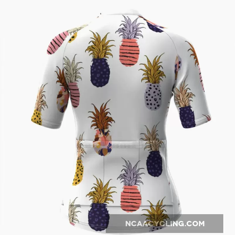 Women's Multicolor Pineapple Print Cycling Jersey- White
