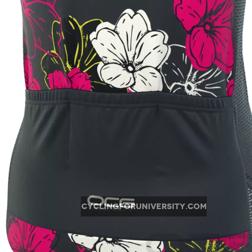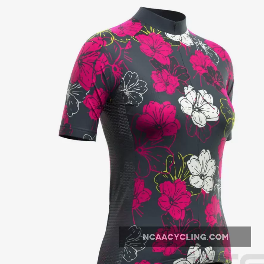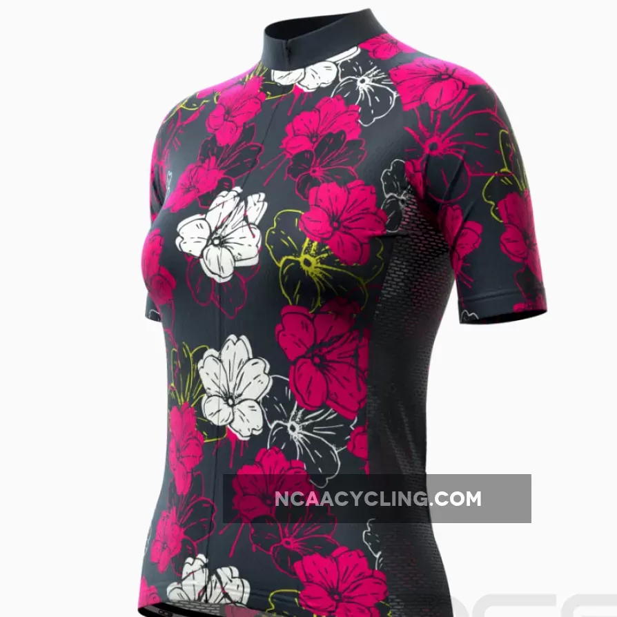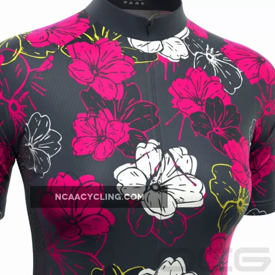 Women’s Pink Floral Short Sleeve Cycling Jersey Details