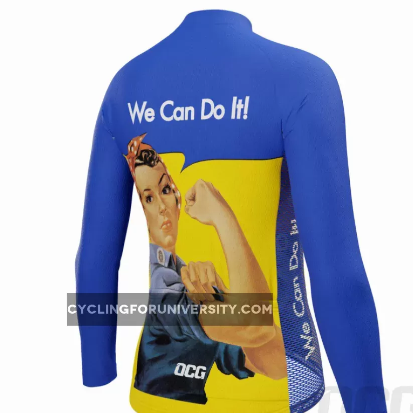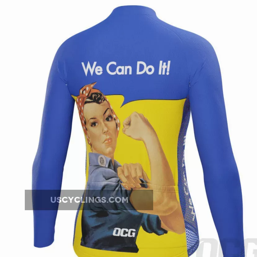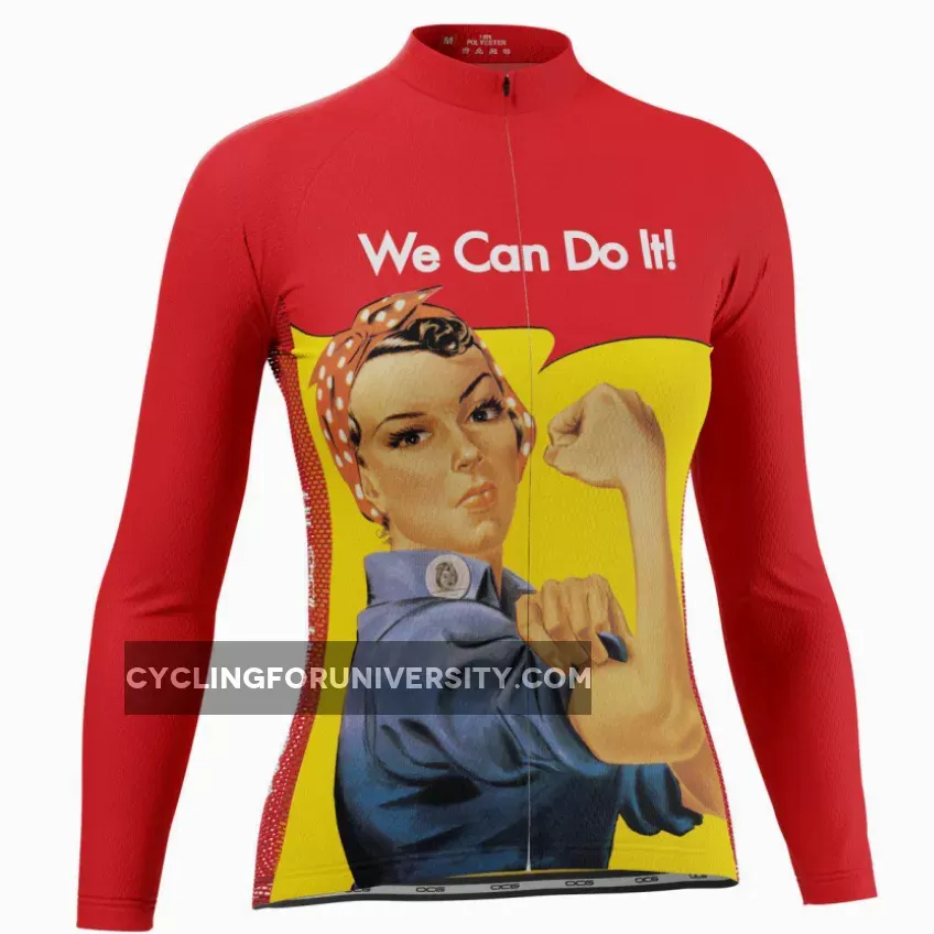 OCG and The Pierce Archive have come together to bring an authentic Women’s Rosie the Riveter We Can Do It Long Sleeve Cycling Jersey featuring the icon of World War 2 representing the women who worked in factories and shipyard producing munitions and war supplies.